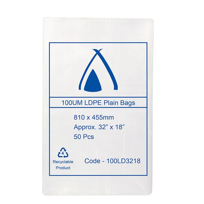 LDPE Clear Poly Bag 32' x 18" 100um ctn/200