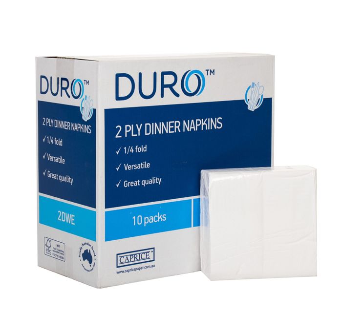 White Dinner Napkin in 2ply, 1/8 fold is a reliable, absorbent napkin perfect for catering and hospitality functions.