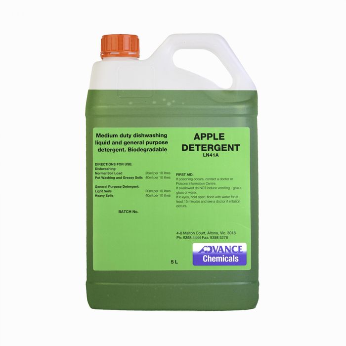 Apple scented manual dishwashing detergent recommended for use when handwashing dishes, cutlery and glassware.