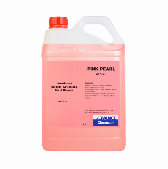 Lotionised liquid hand soap. Gentle cleaning action will remove all soils normally encountered while its neutral pH and carefully selected skin conditioners leave hands feeling soft and supple. Leave hands feeling soft and supple, thereby making hand washing a pleasant experience for the user. DIRECTIONS FOR USE PINK PEARL LN772 is suitable for use through pump type dispensers. It is too thick for gravity type dispensers.