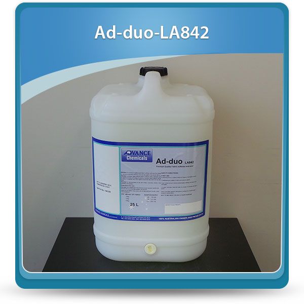 Premium liquid fabric softener and sour for laundries. Formulated for use as a one-shot softening and souring agent of laundered fabrics. Combines highly effective fabric softeners with surfactants and the latest in souring technology to produce a product which delivers all the benefits of a laundry sour and imparts a luxurious silky feel to the laundered fabric. DIRECTIONS FOR USE ADDUO LA842 recommended addition rates will depend upon: • Machine type and capacity • The alkali system used • Dip (water) levels • Type and degree of soiling • Other additives (if any) used during the wash program ADDUO LA842 should be used in the final rinse of the wash program. Optimum results are obtained uf the rinse temperature is above 30OC.