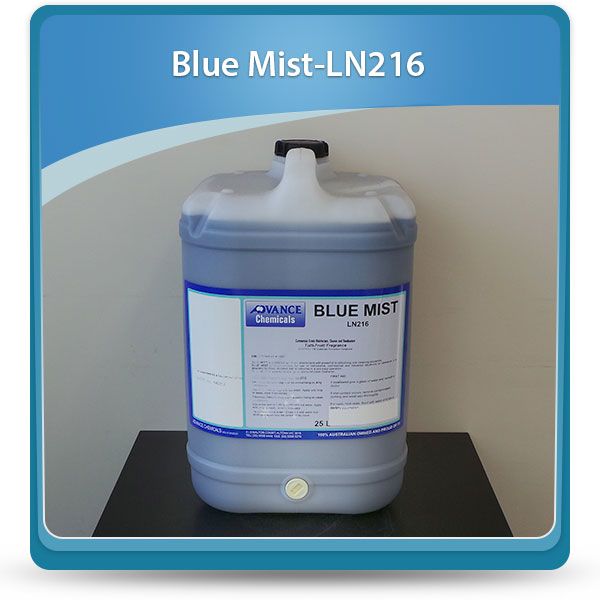 Quaternary ammonium based disinfectant with a tutti-fruiti scent Commercial grade disinfectant with powerful re-odourising and cleaning properties. Recommended for use in commercial, residential and industrial situations or whenever it is desirable to clean, disinfect and re-odourise in a one easy operation. RECOMMENDED USAGE RATES AND DIRECTIONS Cleaning and Re-odourising in dirty conditions Use at the rate of 1:20 with hot water. Apply with mop or swab, rinse if necessary. Cleaning and Re-odourising in clean conditions Use at the rate of 1:80 to 1:160 with hot water. Apply with mop or swab, rinse if necessary. Efficacy: BLUE MIST LN216 is effective against Staphylococcus Aureus and Escherichia Coli at a dilution rate of 1:60 after 5 mins