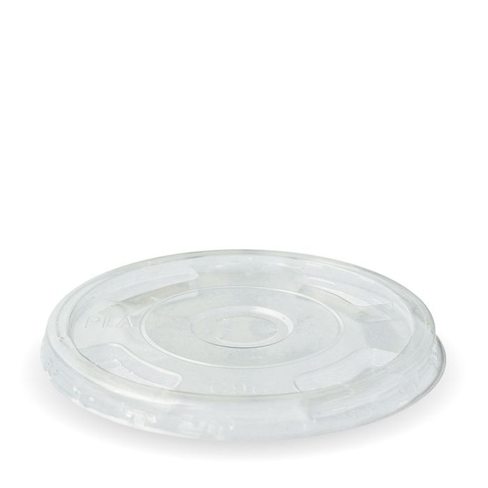 Our bioplastic cup lids are made from plants, not oil. Certified industrially compostable. This lid is flat with a half moon cut. This lid fits our 300, 360, 420, 500, 600 & 700ml Clear BioCups. Note: cold use only.