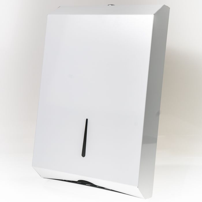 This interleaved towel dispenser can store a generous amount of paper towel, despite its subtle and compact design. Its metal construction means it's a reliable and durable choice.