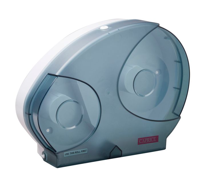 Save time and reduce wastage with the Caprice jumbo reserve toilet roll dispenser in durable ABS plastic. This dispenser is transparent so you can see how much toilet paper is left, and saves you time as you don't have to add new jumbo rolls as often as with other dispensers, you'll have one in reserve at all times! The jumbo reserve toilet roll dispenser suits the jumbo range of toilet rolls from Caprice.